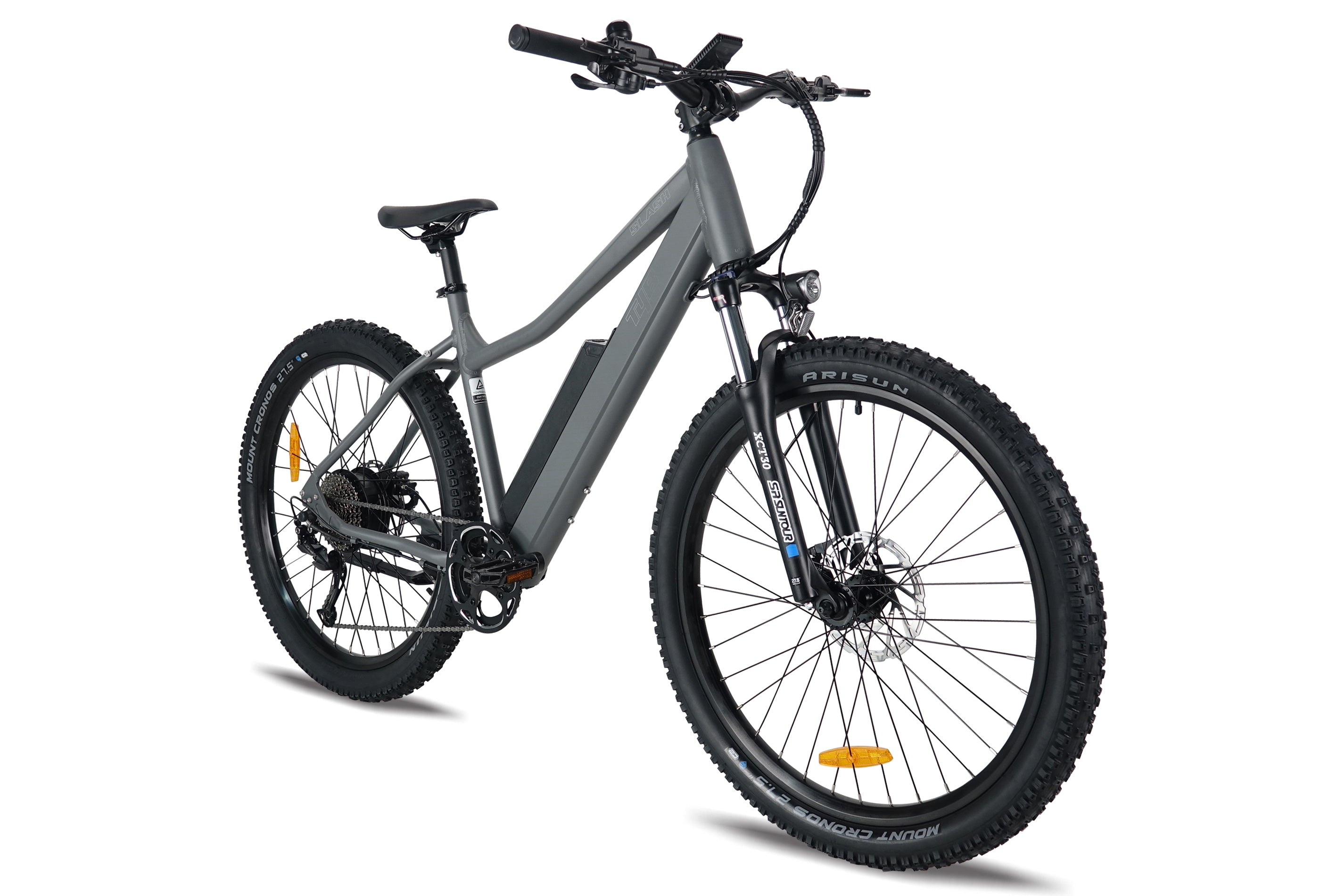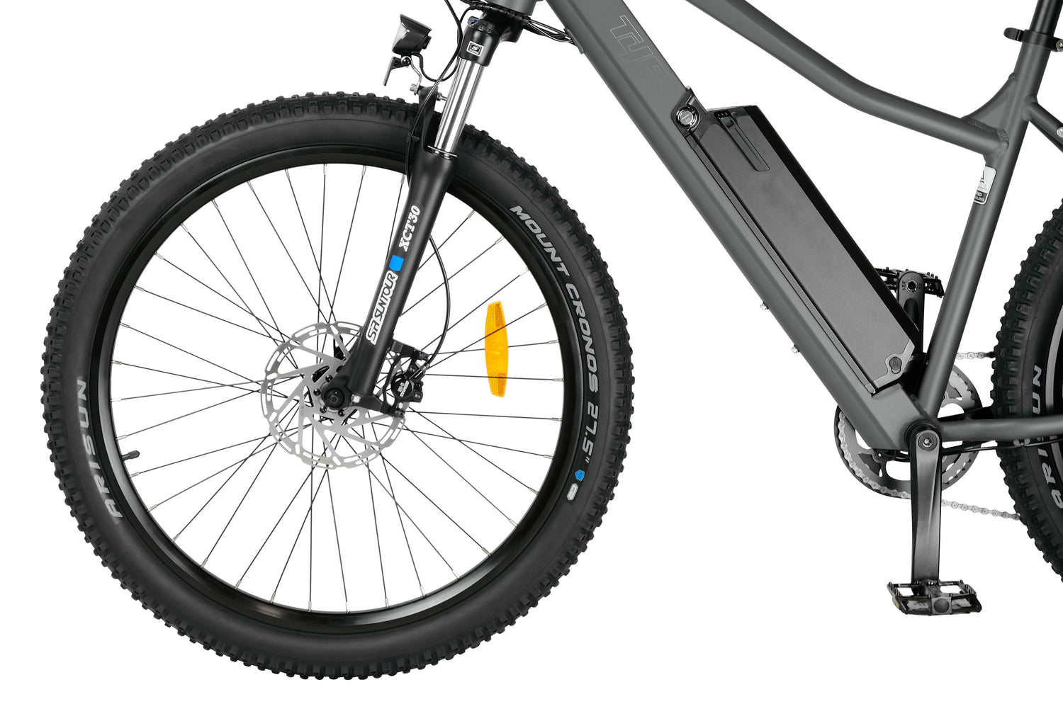 - Comfort & Traction: SR SUNTOUR XCT30 front suspension fork (100 mm travel) with ARISUN Mount Cronos 27.5″ × 2.35″ tires