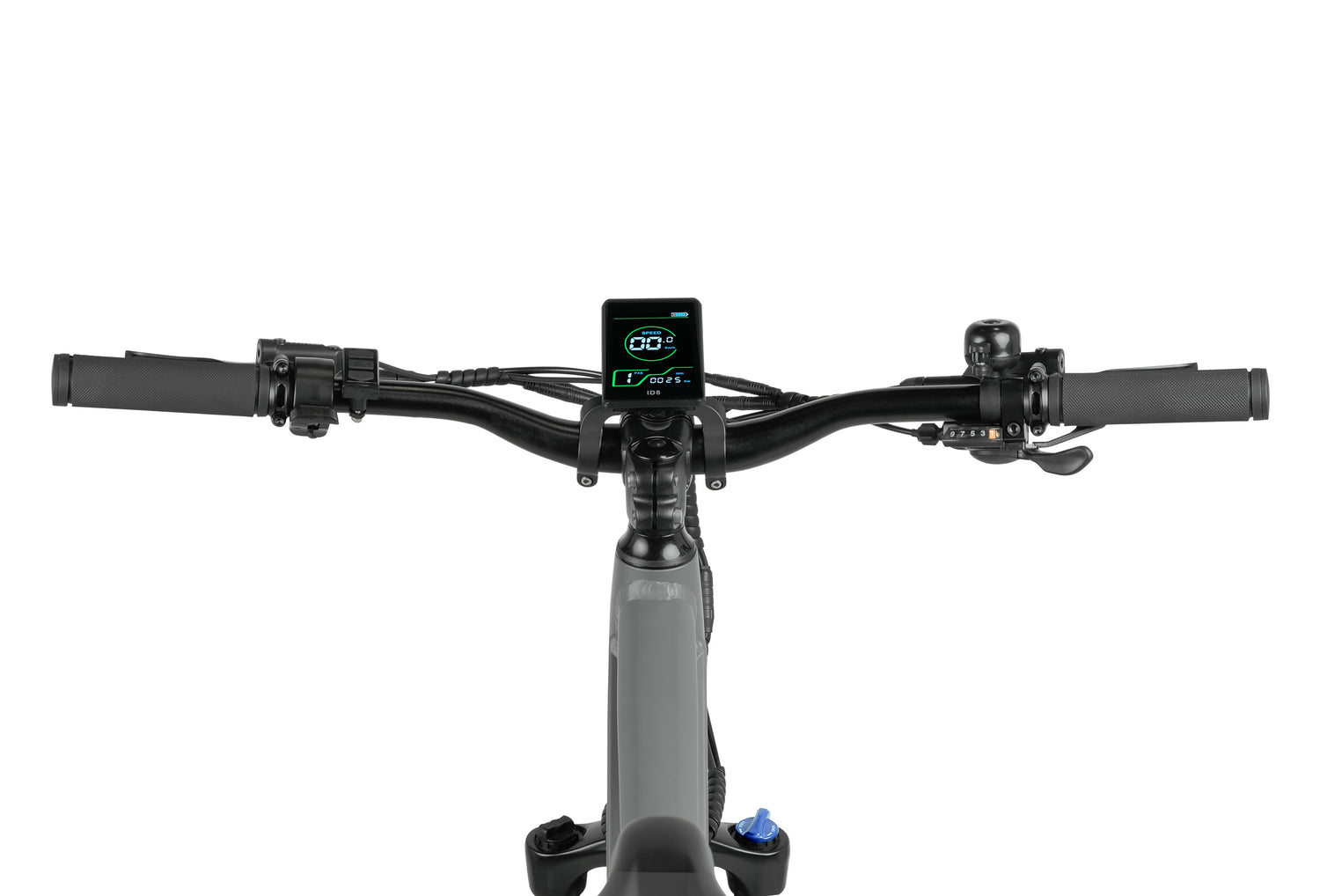 - Controls & Display: Thumb throttle plus cadence-sensor pedal assist (5 levels), visible on full LCD display